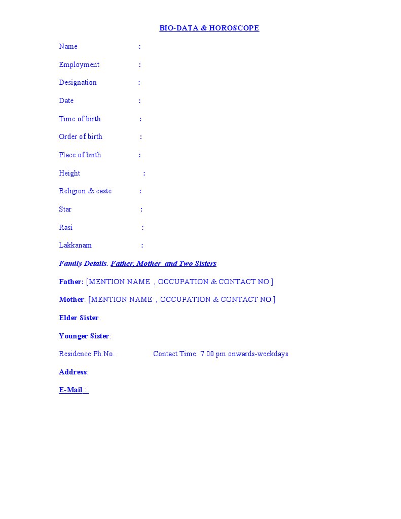 Tamil Marriage Biodata Format Download Word Templates For Free - ஆடியோ வடிவில் ஜாதகம் கணித்து தரப்படும்.